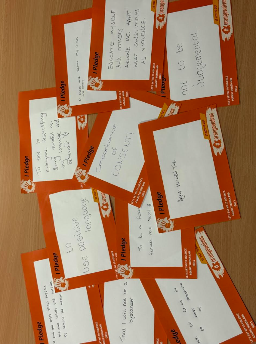 6th Form students were encouraged to reflect on the issue and make personal pledges. These pledges outline specific actions they will take to promote an end to violence against women and girls, fostering a culture of respect and intervention within our school and wider community.