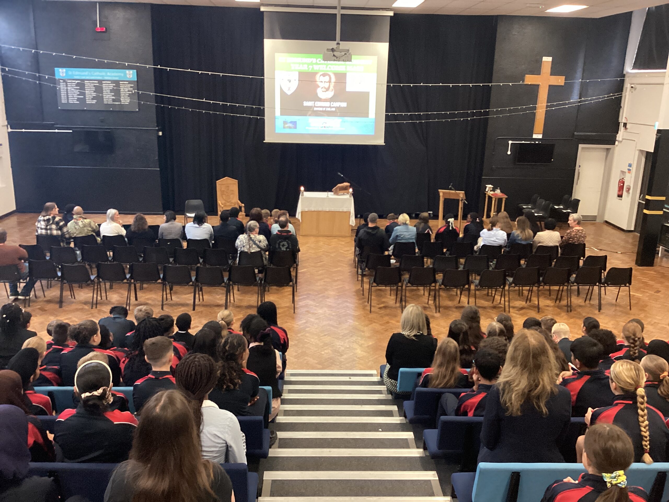 This morning our new Year 7 students, along with stheir family members, gathered in the arena to celebrate their “Welcome Mass.” The Mass was celebrated by our new Academy Priest Chaplain, Fr Gerry, who is also the assistant priest at St Carlo Acutis parish here in Wolverhampton.