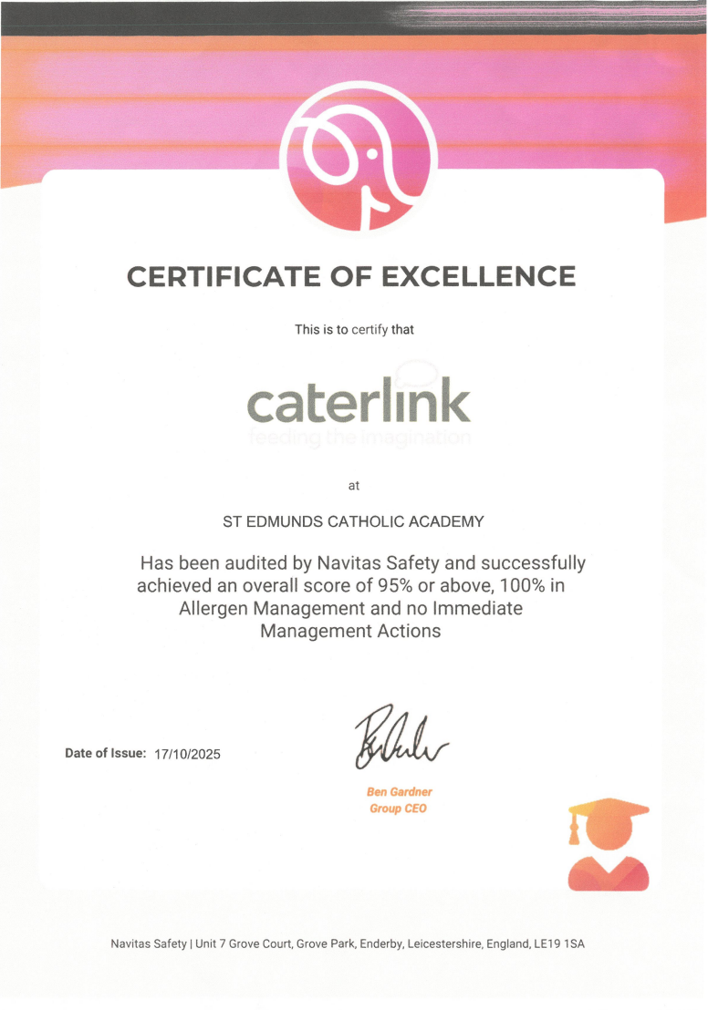 This is fantastic news! Congratulations to the Caterlink Catering Team on receiving the Certificate of Excellence!